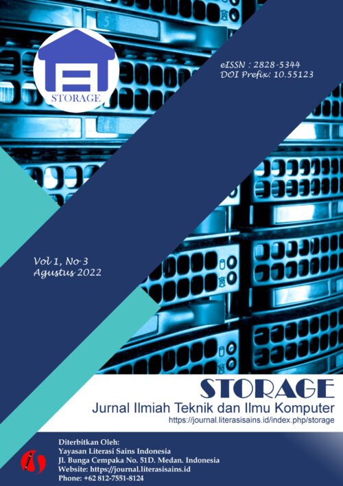 STORAGE adalah Jurnal Ilmiah Teknik dan Ilmu Komputer yang diterbitkan 4 (empat) kali dalam setahun, yaitu pada bulan Februari, Mei, Agustus dan November oleh Yayasan Literasi Sains Indonesia. Jurnal ini merupakan jurnal yang dapat akses secara terbuka bagi para Peneliti, Mahasiswa dan Dosen yang ingin mempublikasikan hasil penelitiannya pada bidang Teknik dan Ilmu Komputer.